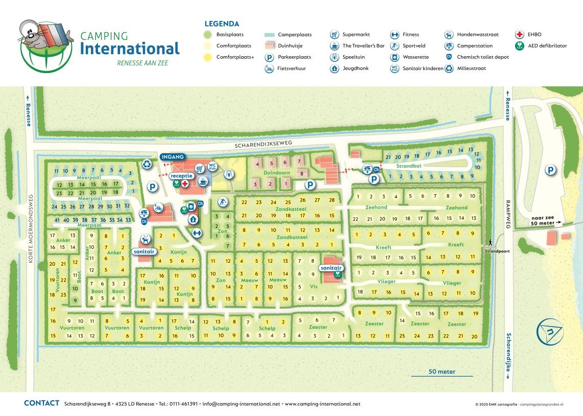 Using the map below, you can easily find your way around the campsite. At our reception, we also have maps available of Renesse and the cycle routes on Schouwen-Duiveland. Feel free to drop by!